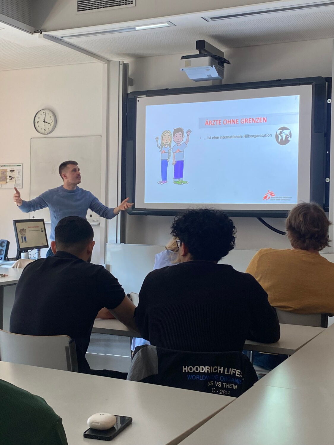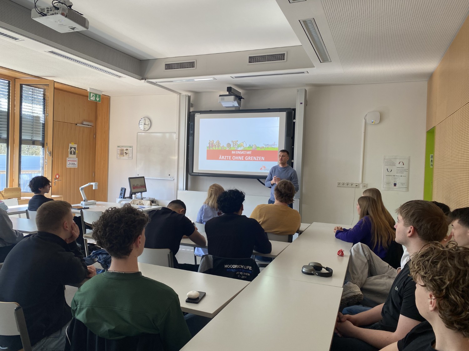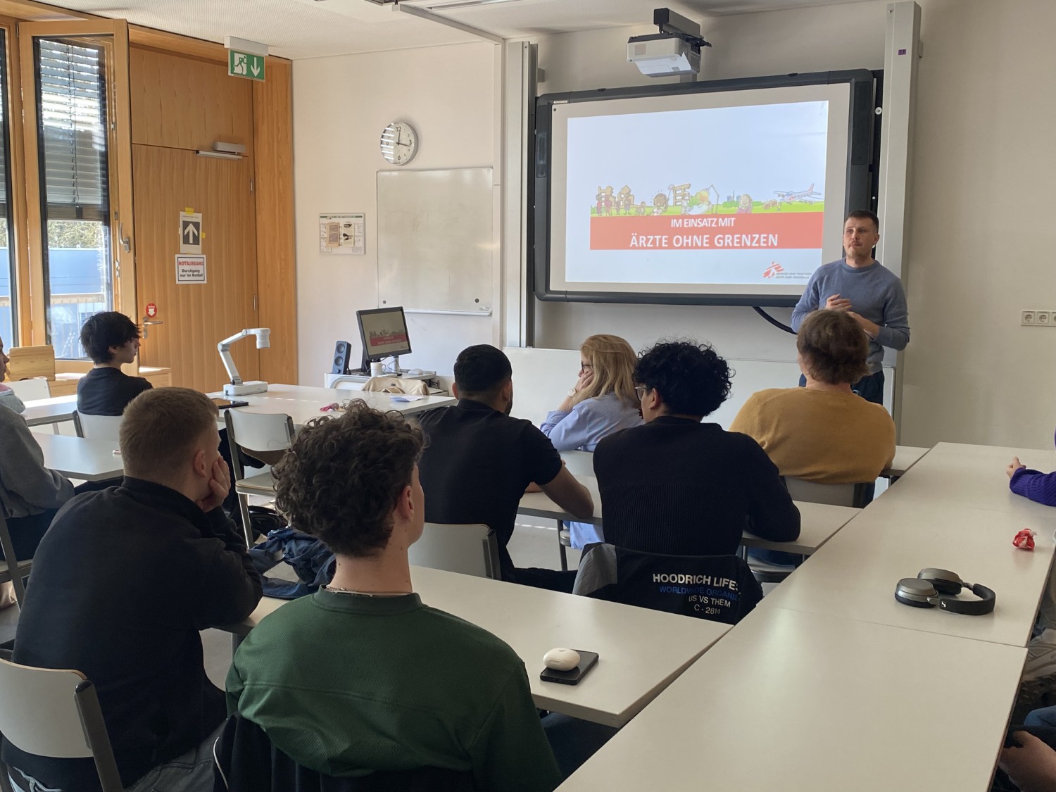 Der Kinderarzt Sebastian Ortmann berichtete den beiden PoWi Leistungskursen der Jahrgangsstufe Q2 eindrucksvoll von seiner einjährigen Arbeit in einem Hospital von „Ärzte ohne Grenzen e.V./ Médecins Sans Frontières“ im Osten der Demokratischen Republik Kongo.