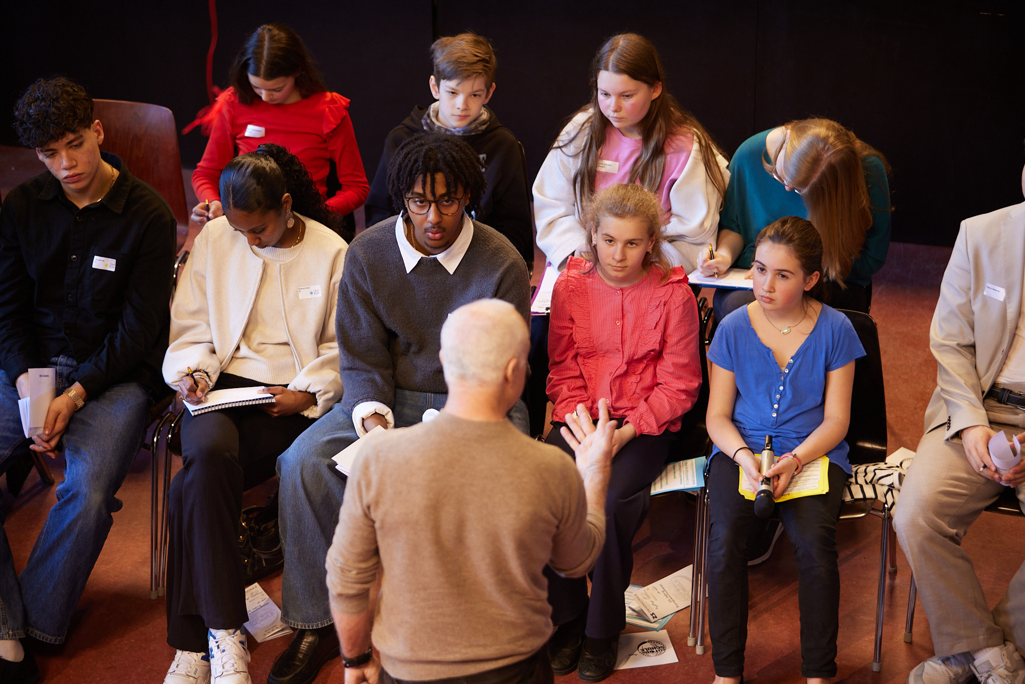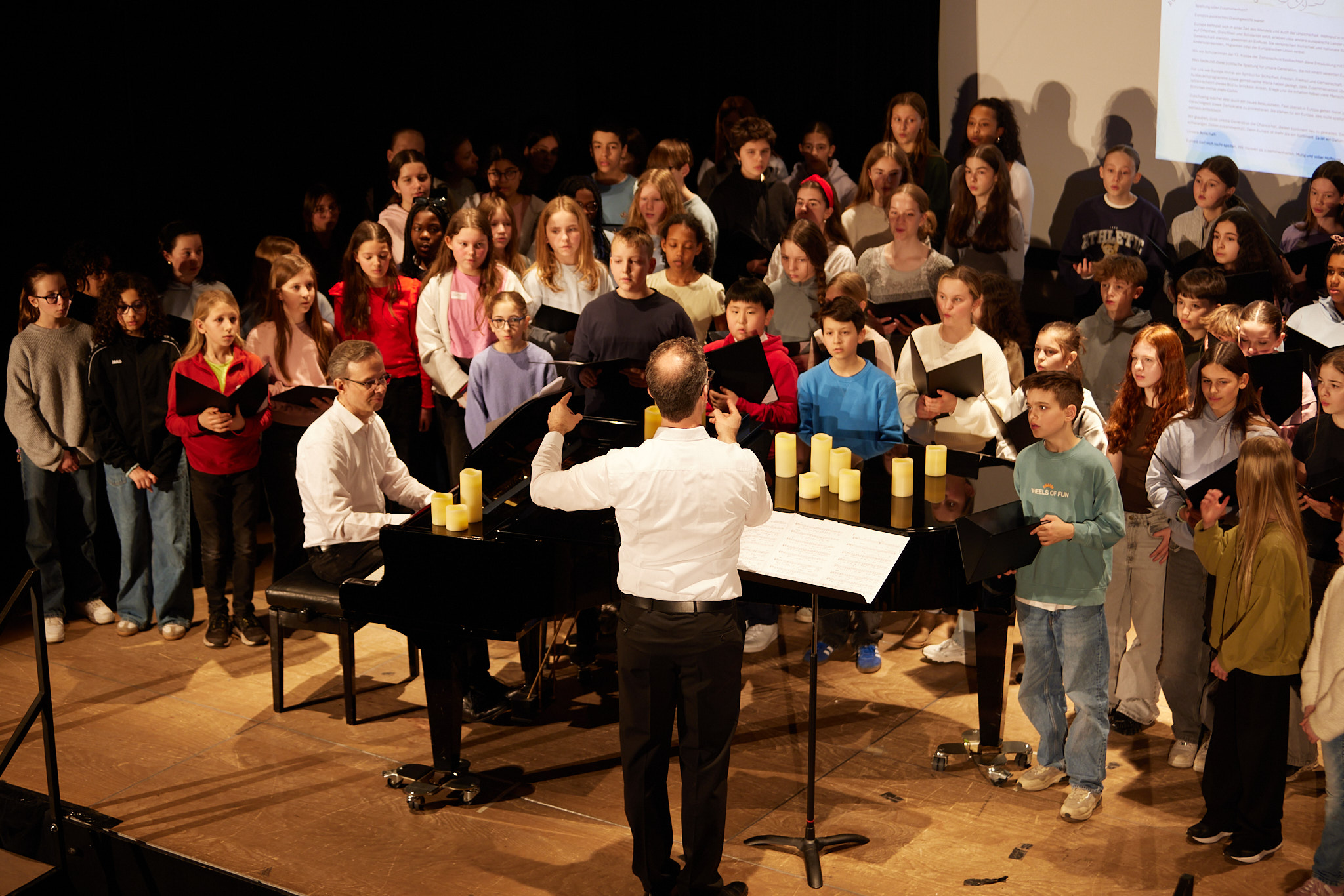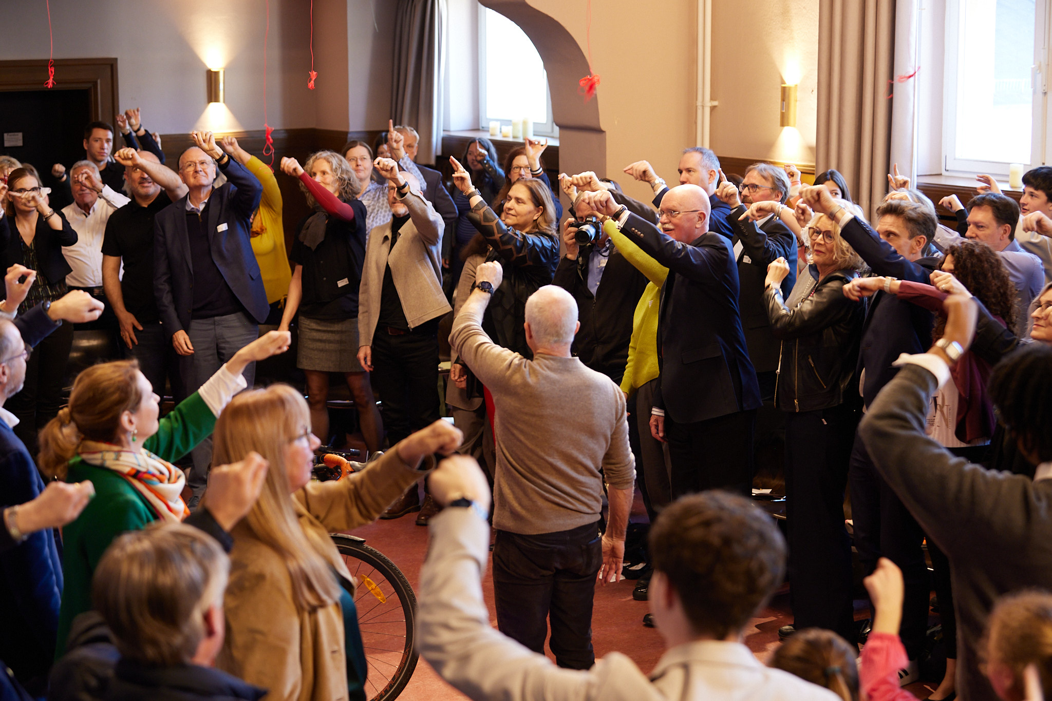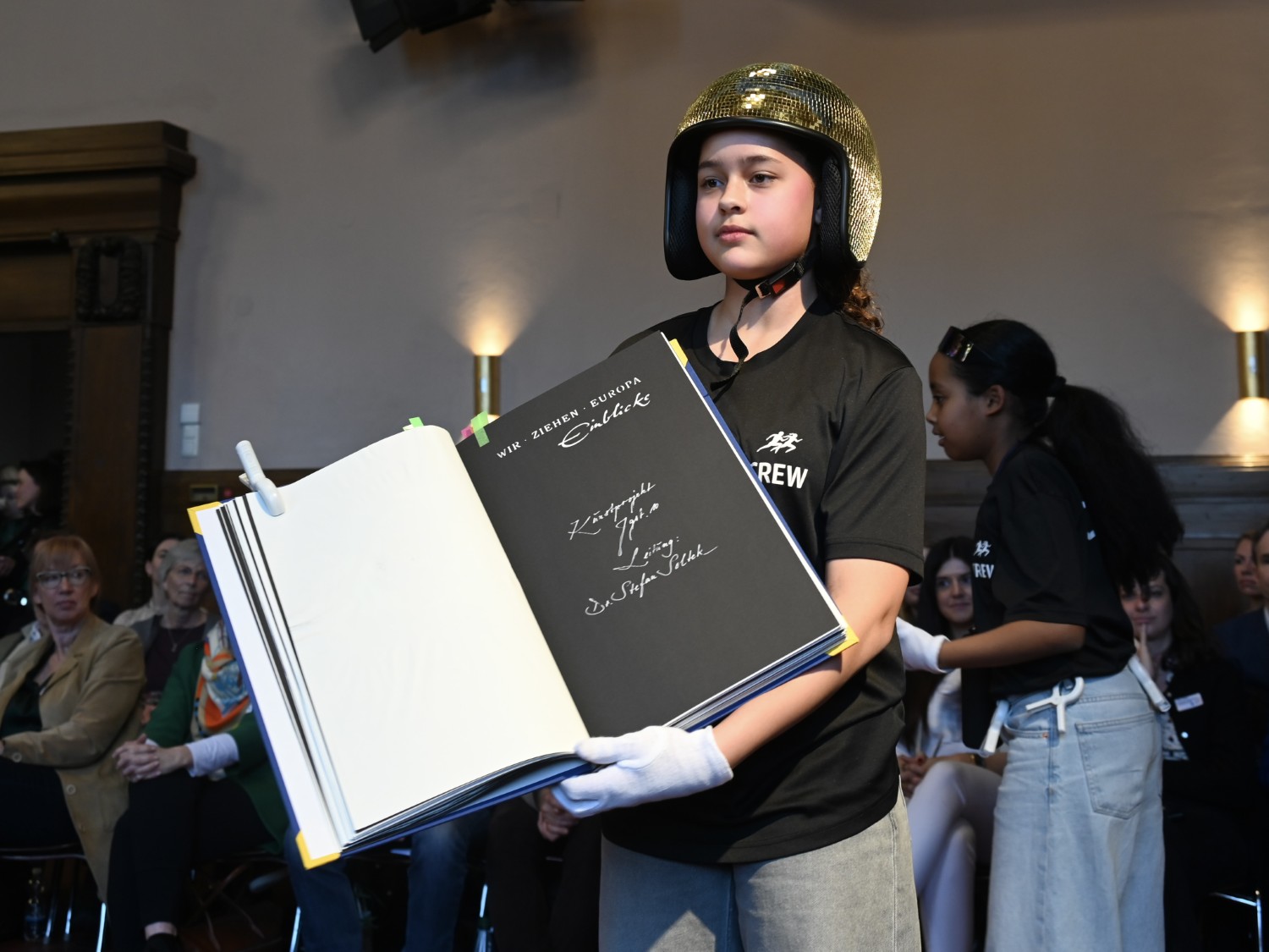 Die ganze Schule ist auf den Beinen. In der Aula versammeln sich nach und nach aktive und ehemalige Schülerinnen und Schüler, Lehrkräfte, Eltern, Schulleitung sowie die zahlreichen Gäste aus Politik, Schulgemeinde, Bildungsverwaltung, Partnerschulen und Europaschulen. Hier treffen sich alte Bekannte, Weggefährten und Kooperationspartner. Die Festgemeinde nimmt ganz im Sinne der demokratischen und lernenden Institution in kreisförmiger Anordnung Platz: Kommunikationskultur statt Redenmarathon.