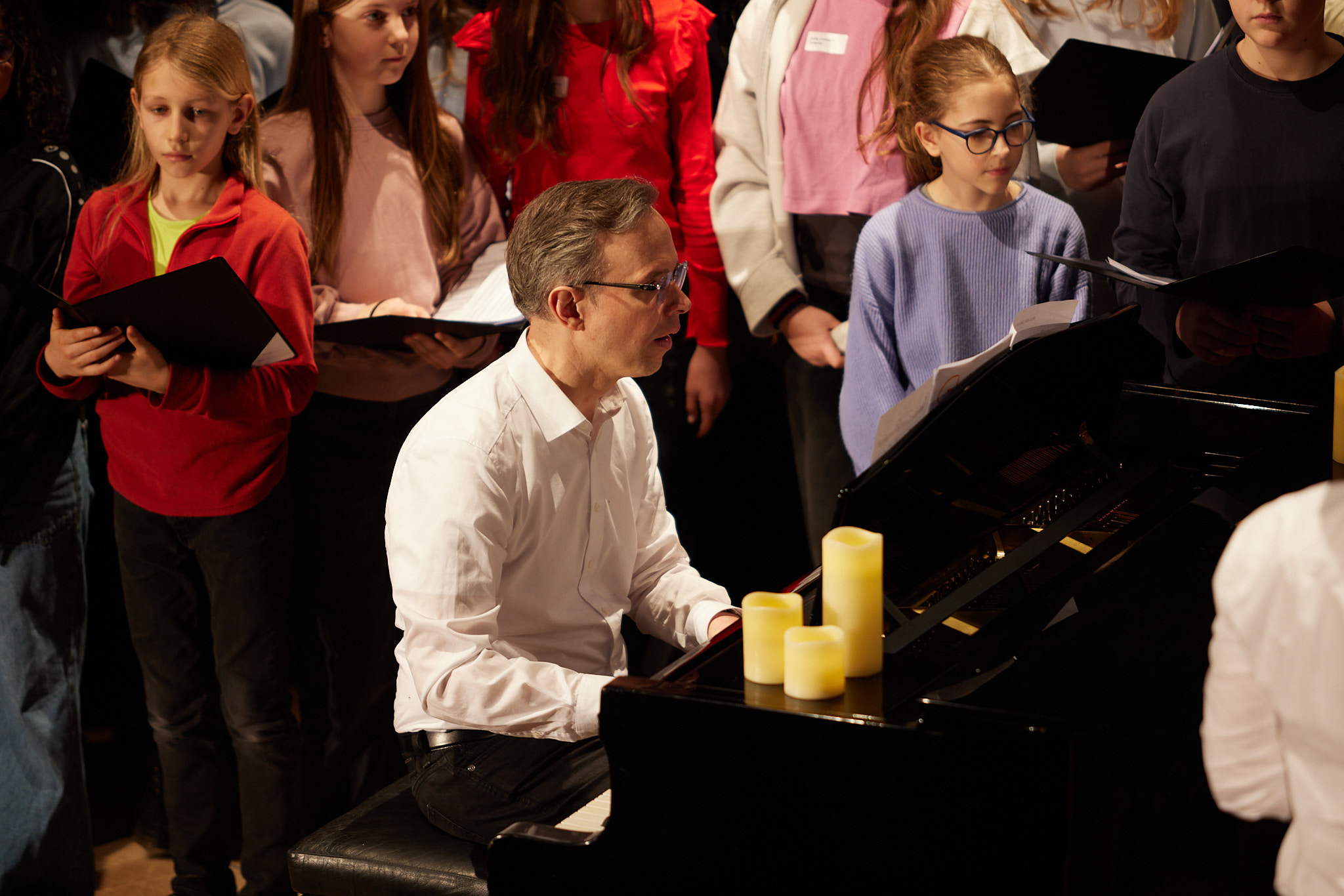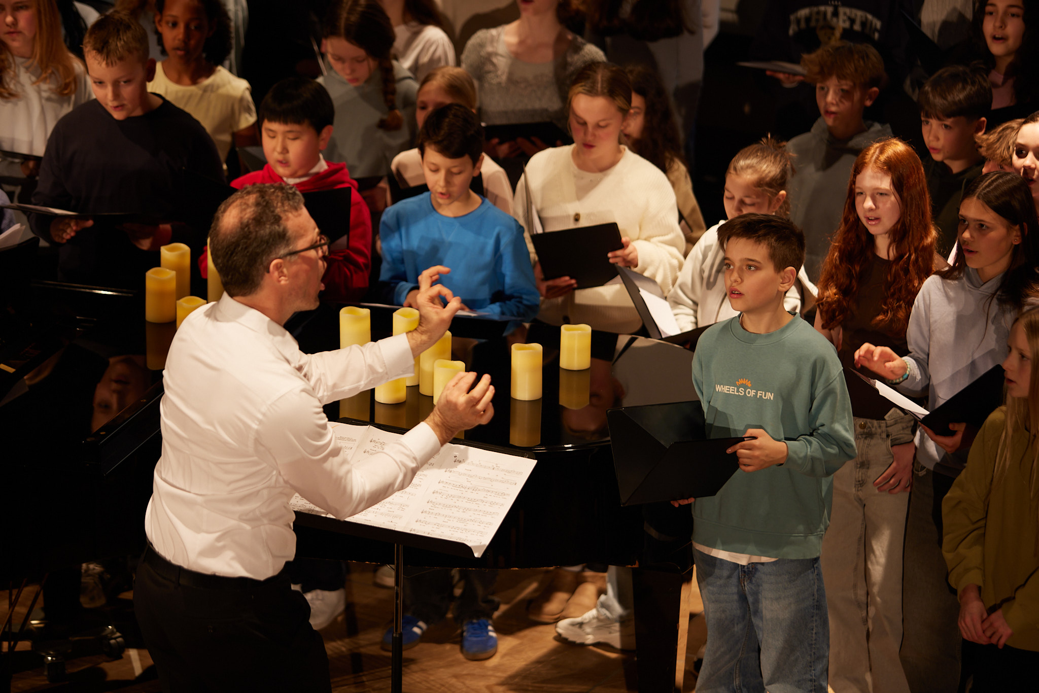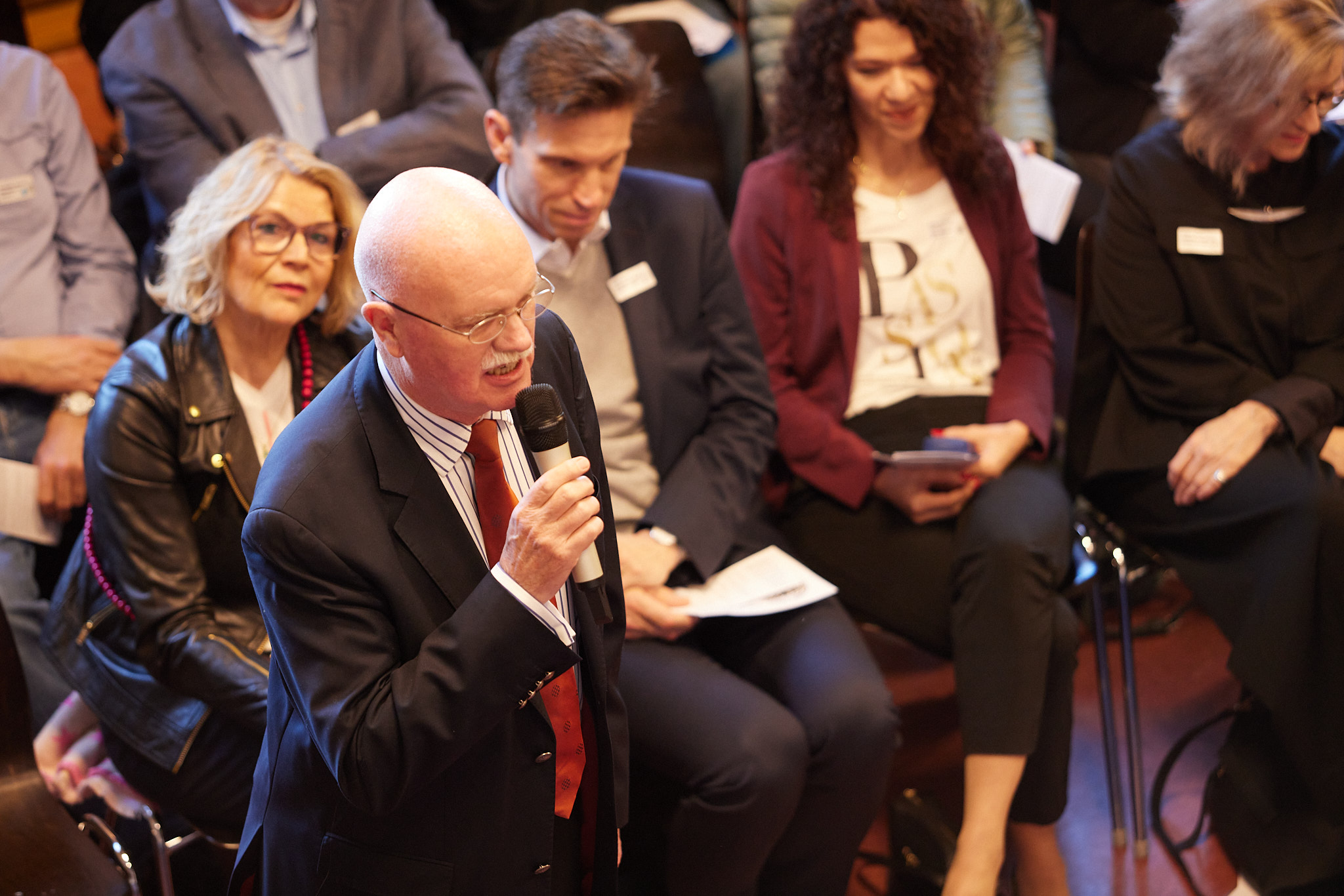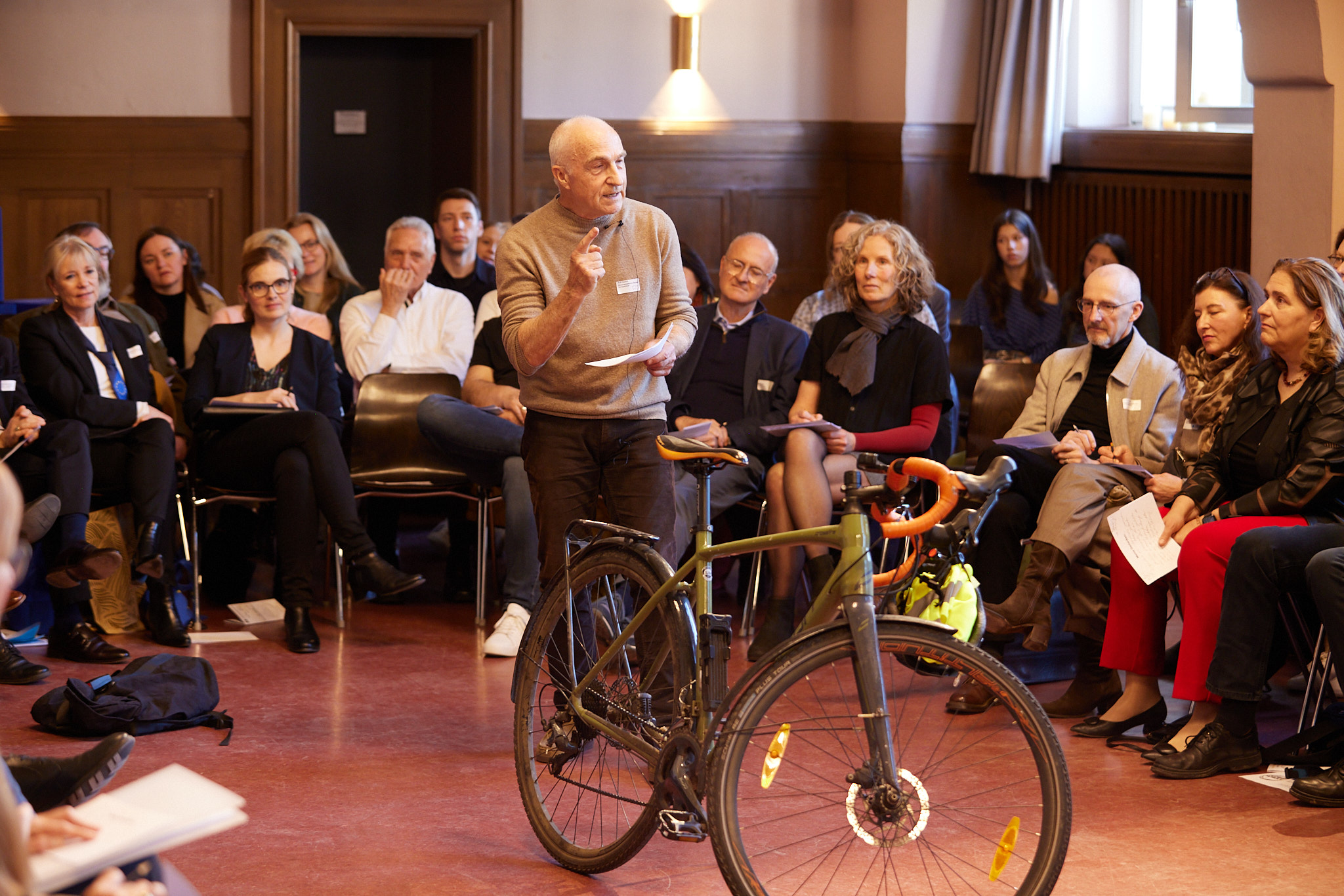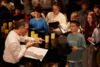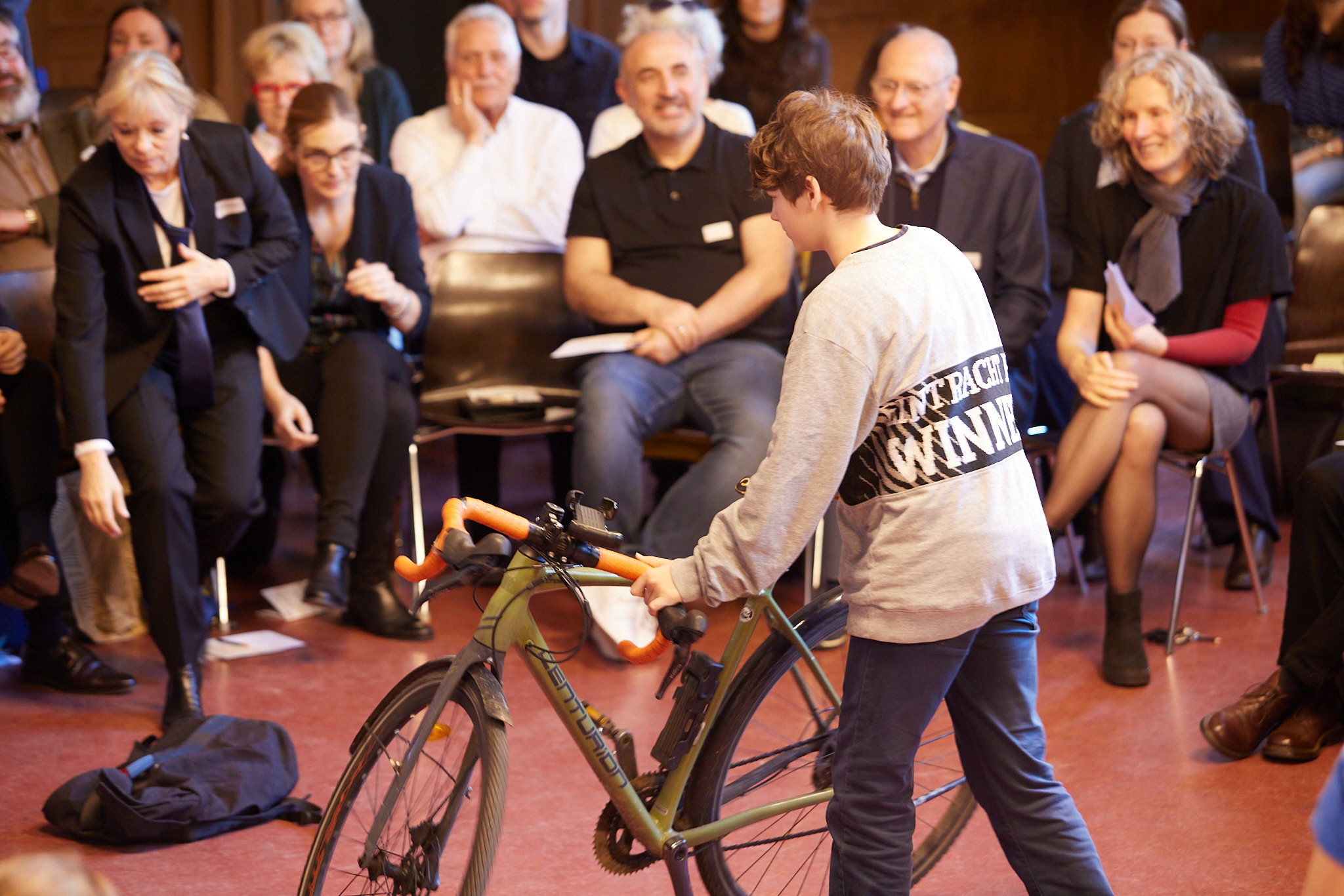 Die ganze Schule ist auf den Beinen. In der Aula versammeln sich nach und nach aktive und ehemalige Schülerinnen und Schüler, Lehrkräfte, Eltern, Schulleitung sowie die zahlreichen Gäste aus Politik, Schulgemeinde, Bildungsverwaltung, Partnerschulen und Europaschulen. Hier treffen sich alte Bekannte, Weggefährten und Kooperationspartner. Die Festgemeinde nimmt ganz im Sinne der demokratischen und lernenden Institution in kreisförmiger Anordnung Platz: Kommunikationskultur statt Redenmarathon.