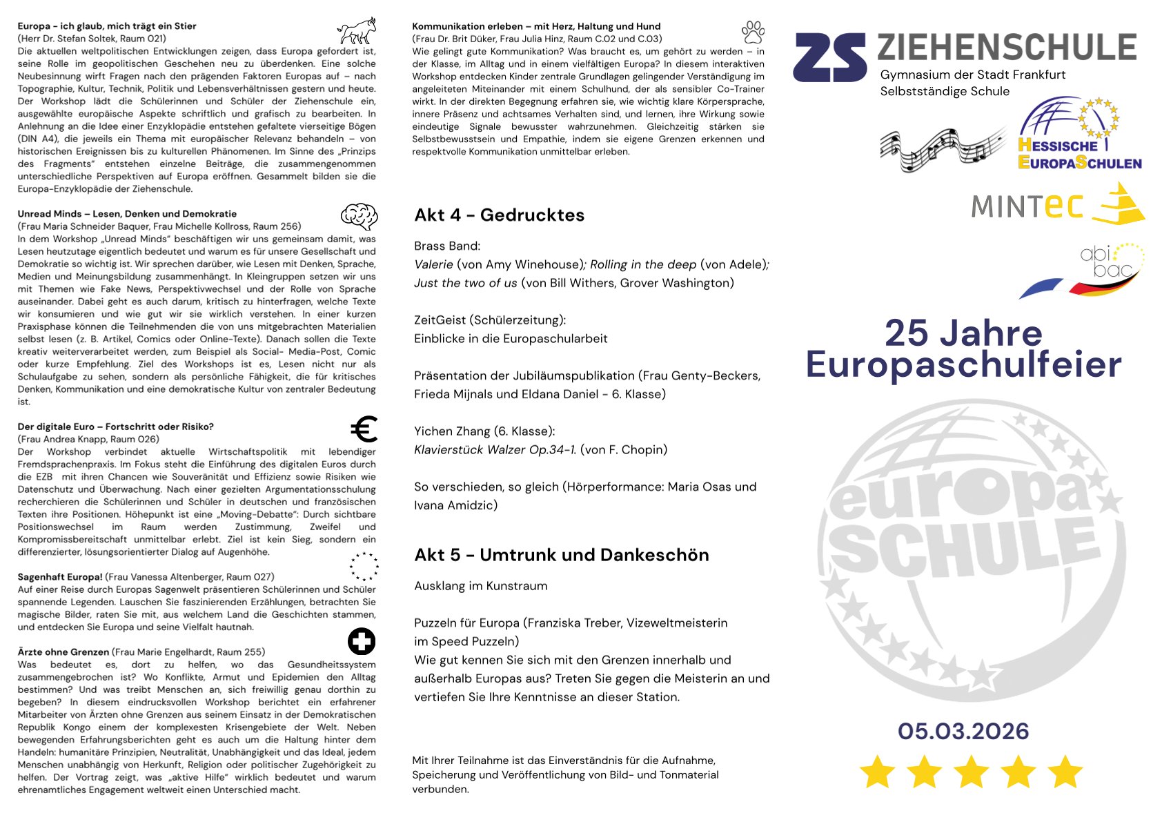 Selbst der in der KMK-Empfehlung zur Europabildung von 1978 (2020) geprägte Arbeitsbegriff der Europakompetenz wird bei dieser Ausprägung des Schulentwicklungsprogramms der Hessischen Europaschulen greifbar. Die überwältigende Feier der Ziehenschule am 05.03.2026 war jedenfalls ein überwältigendes Highlight der Schulentwicklung im Bereich der allgemein bildenden Schulen Hessens und verspricht viel für die weitere Gestaltung und Entwicklung des Hessischen Europaschulprogramms.