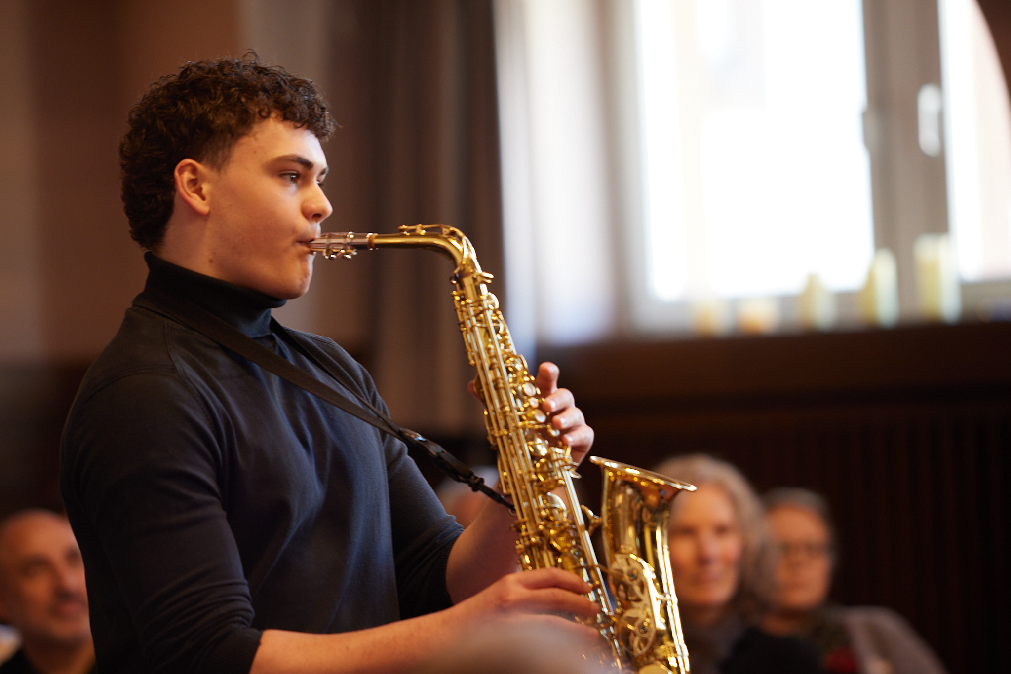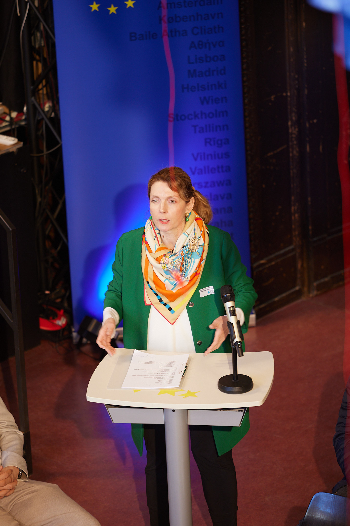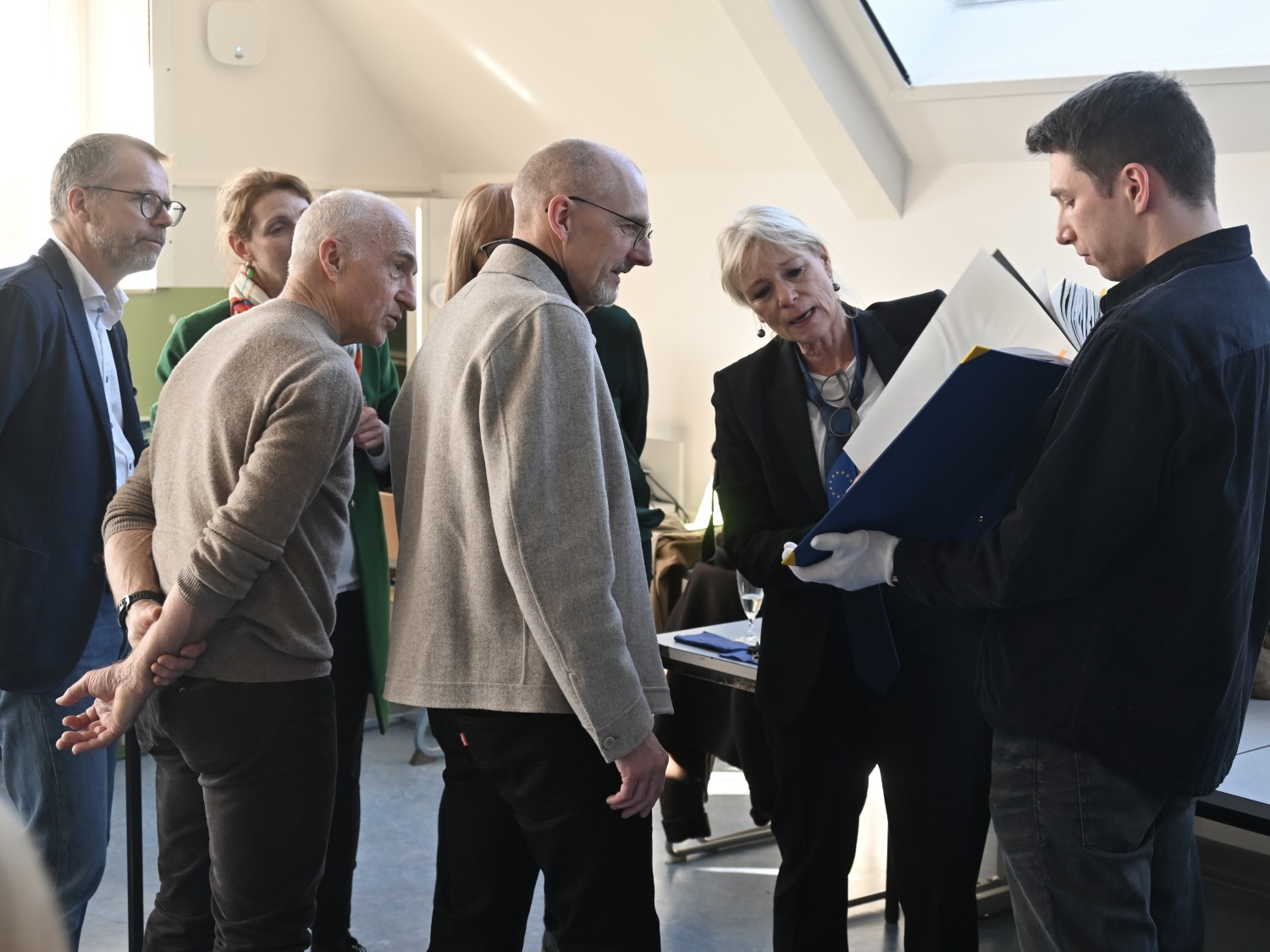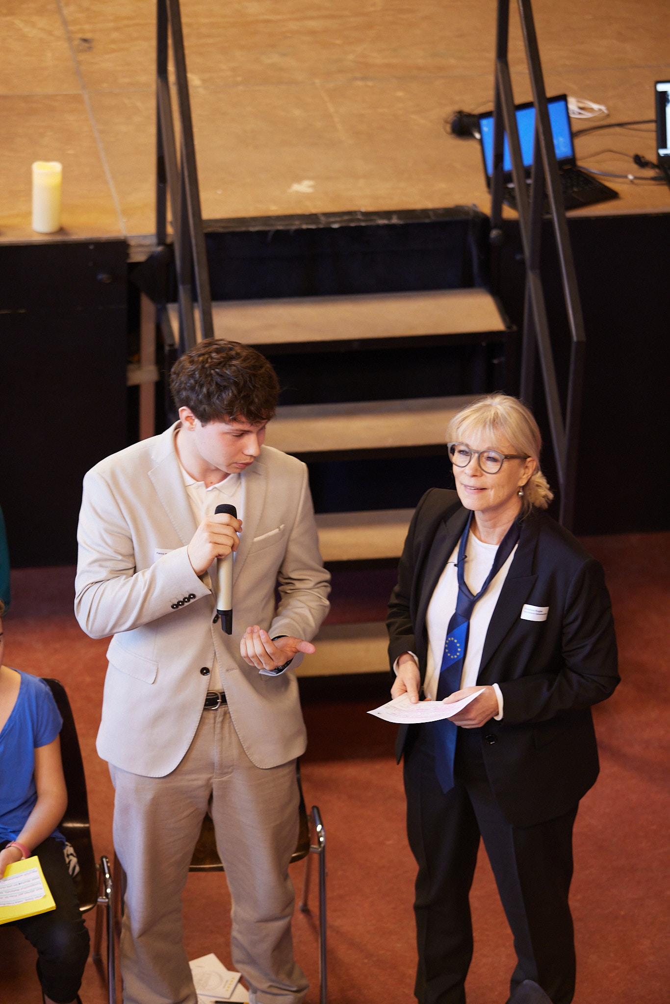 Gegen 10.30 Uhr stimmen eine Hörperformance sowie ein kreatives Arrangement der Europahymne für Violine und Altsaxophon auf das Thema des Tages ein: 25 Jahre gelebte Europabildung in einer weltoffenen, vielfältigen und partizipativen Schulkultur. Schulleiterin Christiane Rogler begrüßt gemeinsam mit dem stellvertretenden Schulleiter Carsten Herold und der Europaschulkoordinatorin Paula Theurich herzlich alle Gäste.